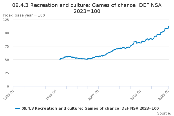 Download this time series09.4.3 Recreation and culture: Games of chance IDEF NSA 2023=100