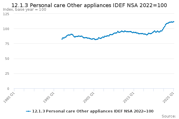 Download this time series12.1.3 Personal care Other appliances IDEF NSA 2023=100