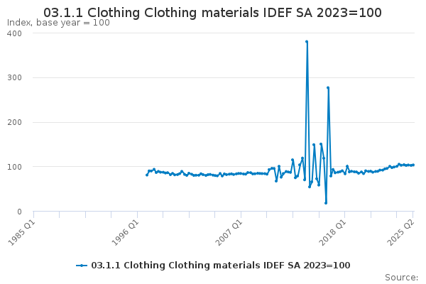 Download this time series03.1.1 Clothing Clothing materials IDEF SA 2023=100