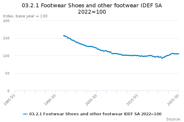Download this time series03.2.1 Footwear Shoes and other footwear IDEF SA 2023=100