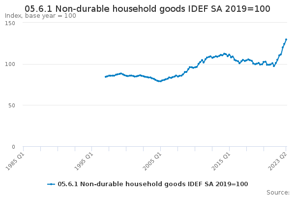 Due to a processing error some time series data in household consumption final expenditure were not updated with the latest data. In the 30 September 2021 release of Consumer Trends an error has been identified in the calculation of annual household expenditure chain volume measures for selected periods between 1985 and 1996. Quarterly figures are unaffected. Current price data are not impacted by this error. This error has now been rectified. We apologise for any inconvenience caused.