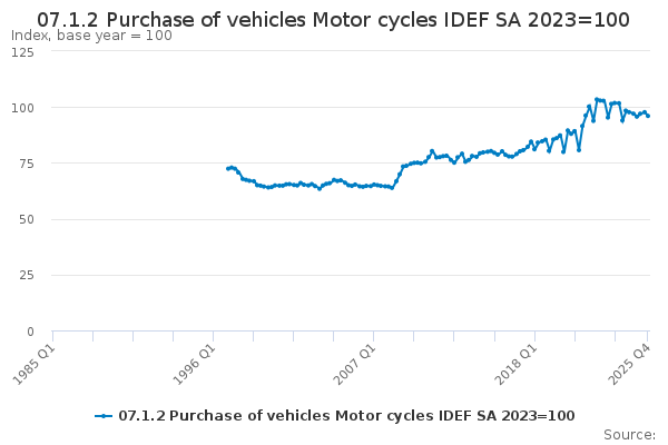 Download this time series07.1.2 Purchase of vehicles Motor cycles IDEF SA 2023=100