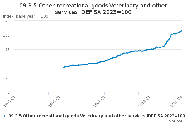 Download this time series09.3.5 Other recreational goods Veterinary and other services IDEF SA 2023=100