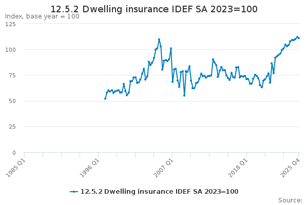 Download this time series12.5.2 Dwelling insurance IDEF SA 2023=100