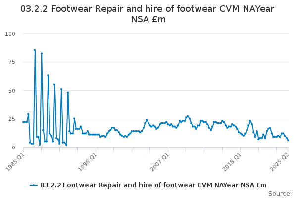 Download this time series03.2.2 Footwear Repair and hire of footwear CVM NAYear NSA £m