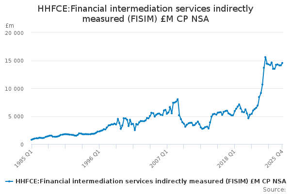 Download this time seriesHHFCE:Financial intermediation services indirectly measured (FISIM) £M CP NSA