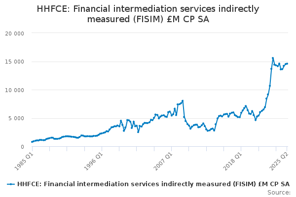 Download this time seriesHHFCE: Financial intermediation services indirectly measured (FISIM) £M CP SA