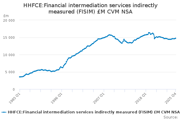 Download this time seriesHHFCE:Financial intermediation services indirectly measured (FISIM) £M CVM NSA