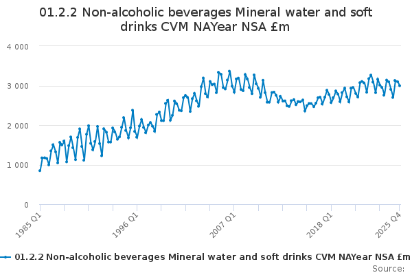 Download this time series01.2.2 Non-alcoholic beverages Mineral water and soft drinks CVM NAYear NSA £m