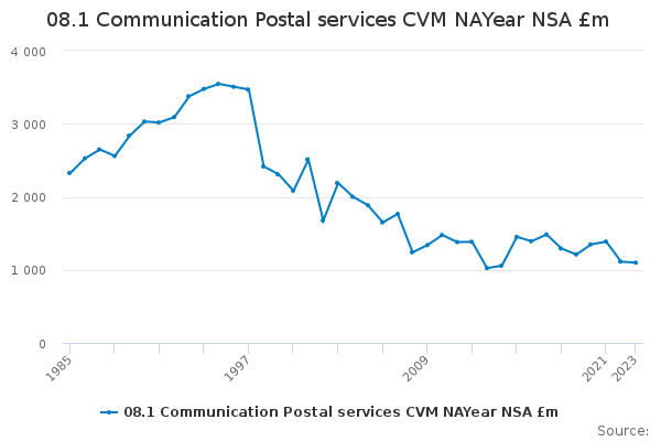 Download this time series08.1 Communication Postal services CVM NAYear NSA £m