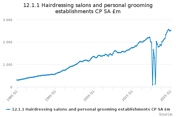 Download this time series12.1.1 Hairdressing salons and personal grooming establishments CP SA £m