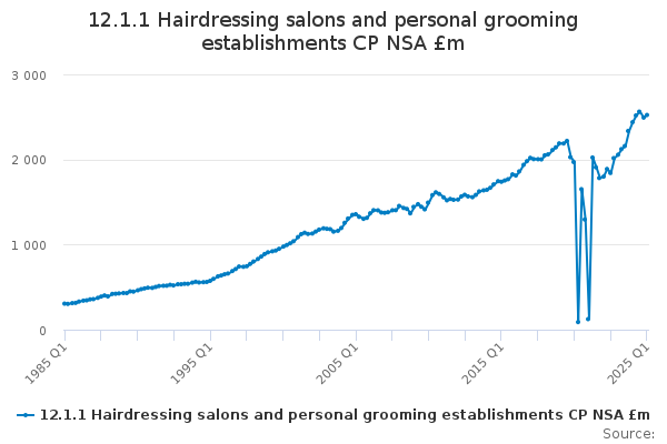 Download this time series12.1.1 Hairdressing salons and personal grooming establishments CP NSA £m