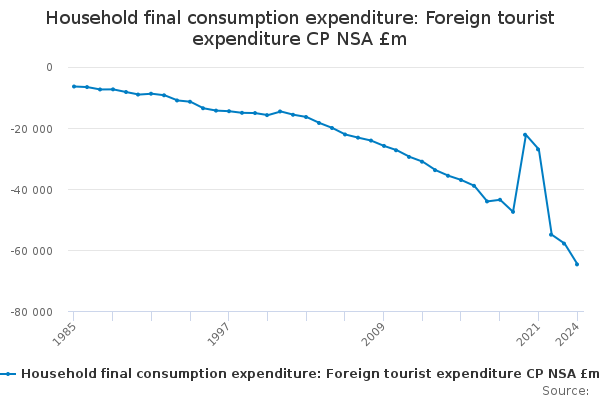 Download this time seriesHousehold final consumption expenditure: Foreign tourist expenditure CP NSA £m