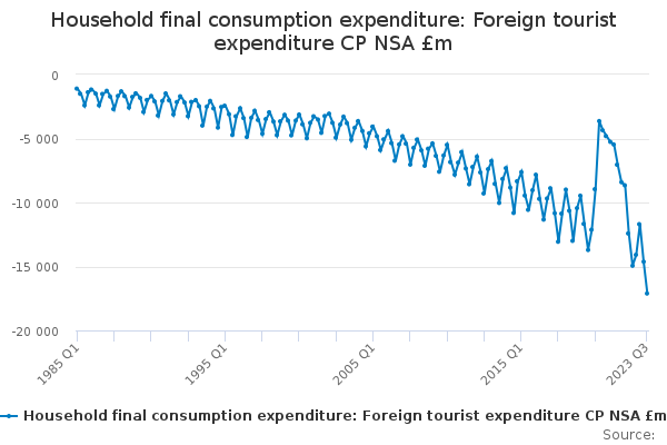 Download this time seriesHousehold final consumption expenditure: Foreign tourist expenditure CP NSA £m
