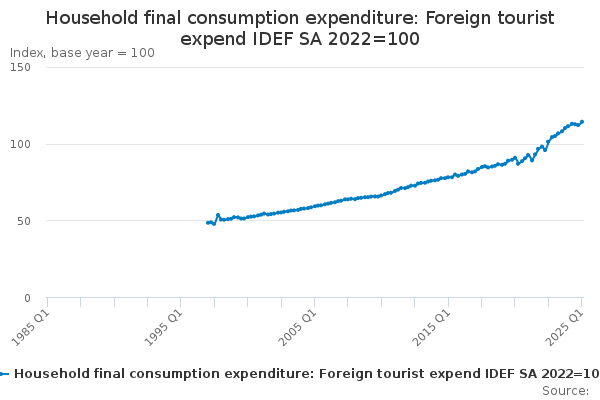 Download this time seriesHousehold final consumption expenditure: Foreign tourist expend IDEF SA 2023=100
