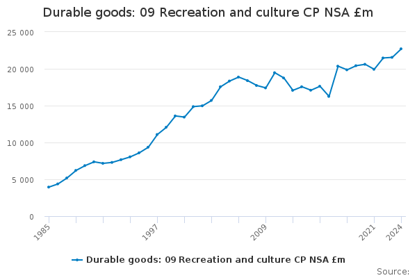 Download this time seriesDurable goods: 09 Recreation and culture CP NSA £m