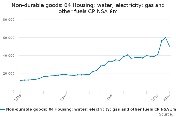 Download this time seriesNon-durable goods: 04 Housing; water; electricity; gas and other fuels CP NSA £m