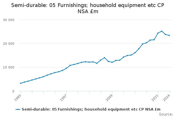 Download this time seriesSemi-durable: 05 Furnishings; household equipment etc CP NSA £m