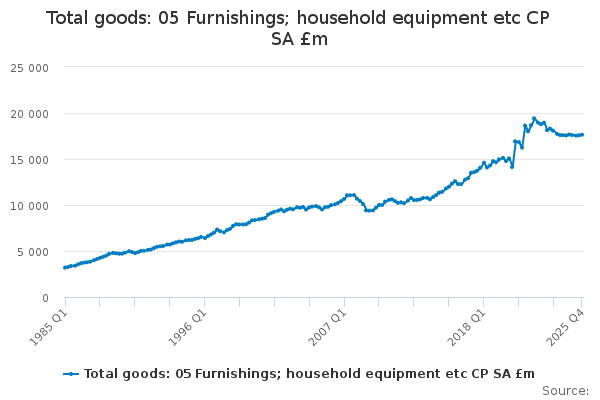 Download this time seriesTotal goods: 05 Furnishings; household equipment etc CP SA £m
