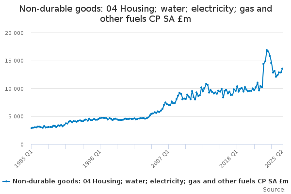 Download this time seriesNon-durable goods: 04 Housing; water; electricity; gas and other fuels CP SA £m