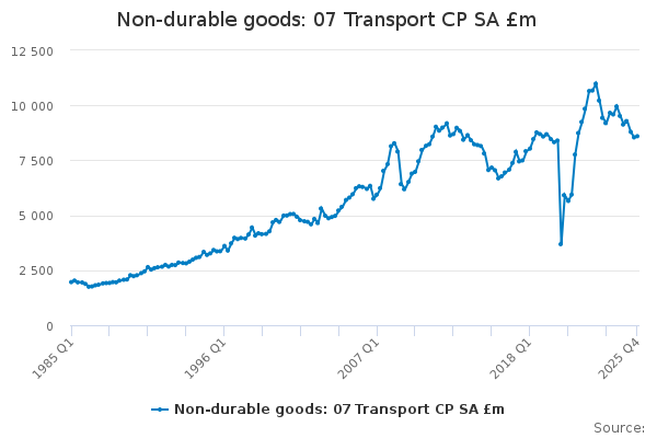 Download this time seriesNon-durable goods: 07 Transport CP SA £m