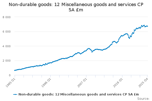 Download this time seriesNon-durable goods: 12 Miscellaneous goods and services CP SA £m