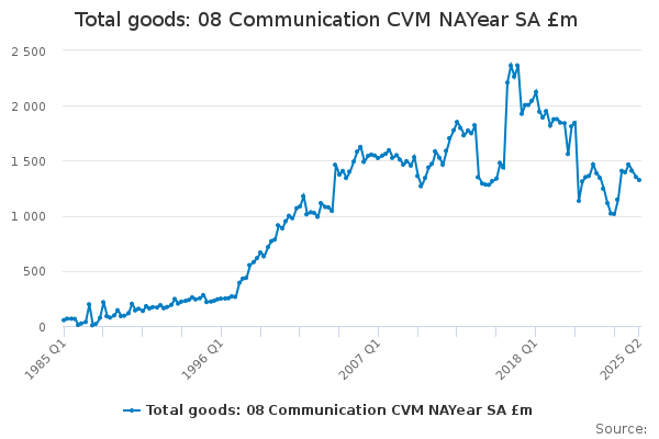 Download this time seriesTotal goods: 08 Communication CVM NAYear SA £m