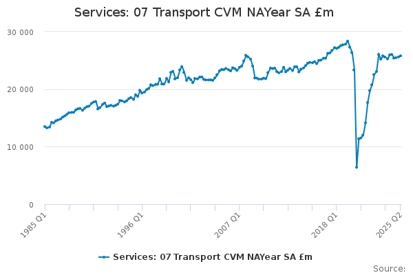 Download this time seriesServices: 07 Transport CVM NAYear SA £m