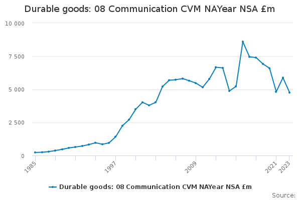 Download this time seriesDurable goods: 08 Communication CVM NAYear NSA £m