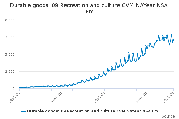 Download this time seriesDurable goods: 09 Recreation and culture CVM NAYear NSA £m