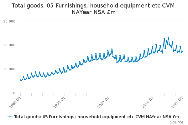 Download this time seriesTotal goods: 05 Furnishings; household equipment etc CVM NAYear NSA £m