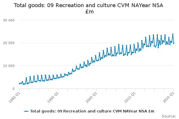 Download this time seriesTotal goods: 09 Recreation and culture CVM NAYear NSA £m