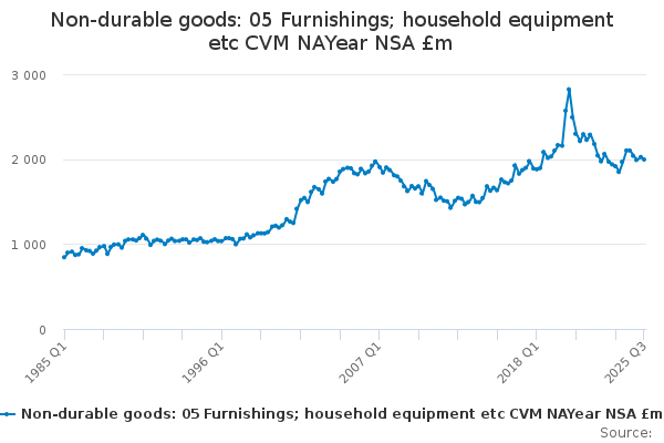 Download this time seriesNon-durable goods: 05 Furnishings; household equipment etc CVM NAYear NSA £m