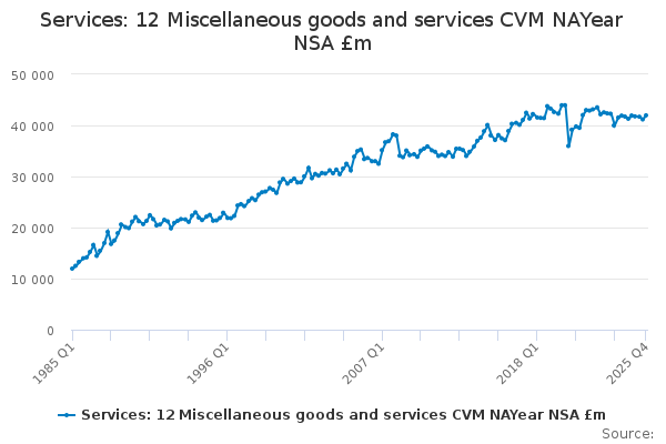 Download this time seriesServices: 12 Miscellaneous goods and services CVM NAYear NSA £m