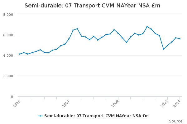 Download this time seriesSemi-durable: 07 Transport CVM NAYear NSA £m