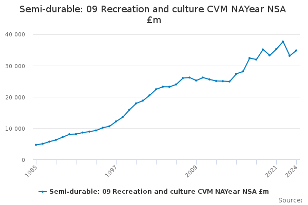 Download this time seriesSemi-durable: 09 Recreation and culture CVM NAYear NSA £m