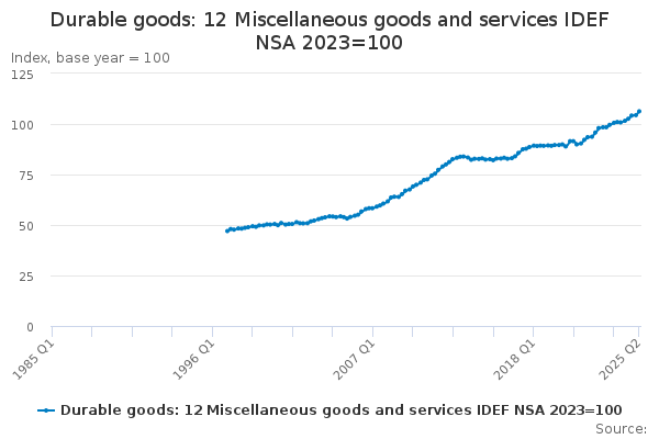 We have corrected an error in the Consumer Trends time series dataset. The previous version had incorrect implied deflator (IDEF) data for the following series between 1985 and 1996 inclusive: