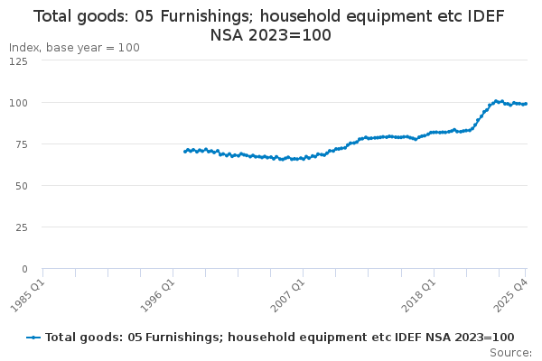 Download this time seriesTotal goods: 05 Furnishings; household equipment etc IDEF NSA 2023=100