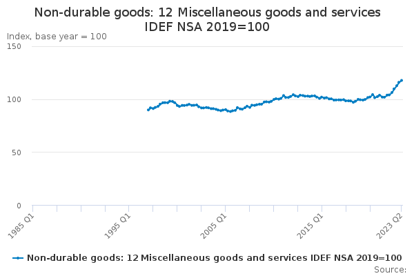Download this time seriesNon-durable goods: 12 Miscellaneous goods and services IDEF NSA 2019=100