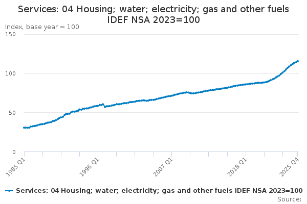 Download this time seriesServices: 04 Housing; water; electricity; gas and other fuels IDEF NSA 2023=100