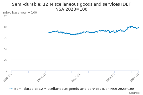 Download this time seriesSemi-durable: 12 Miscellaneous goods and services IDEF NSA 2023=100