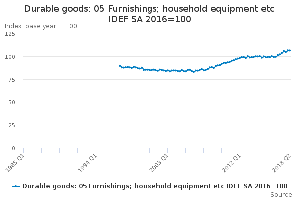 Download this time seriesDurable goods: 05 Furnishings; household equipment etc IDEF SA 2016=100