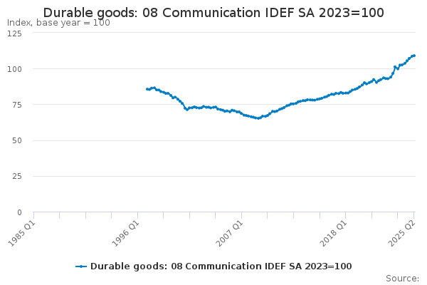 Download this time seriesDurable goods: 08 Communication IDEF SA 2023=100