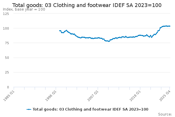 Download this time seriesTotal goods: 03 Clothing and footwear IDEF SA 2023=100