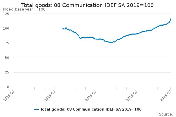 Download this time seriesTotal goods: 08 Communication IDEF SA 2019=100
