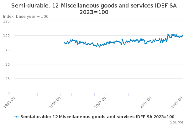 Due to a processing error some time series data in household consumption final expenditure were not updated with the latest data. In the 30 September 2021 release of Consumer Trends an error has been identified in the calculation of annual household expenditure chain volume measures for selected periods between 1985 and 1996. Quarterly figures are unaffected. Current price data are not impacted by this error. This error has now been rectified. We apologise for any inconvenience caused.