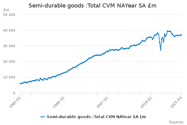 Download this time seriesSemi-durable goods :Total CVM NAYear SA £m