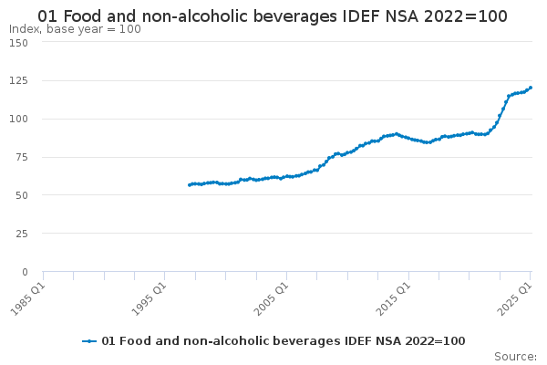 Download this time series01 Food and non-alcoholic beverages IDEF NSA 2023=100