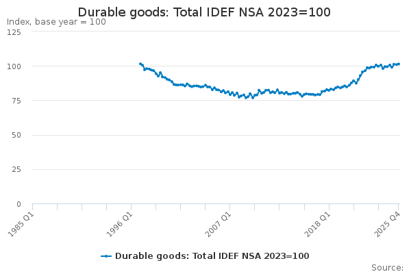 Download this time seriesDurable goods: Total IDEF NSA 2023=100