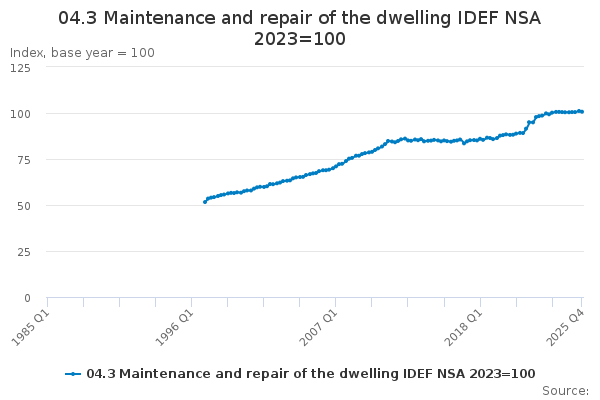Download this time series04.3 Maintenance and repair of the dwelling IDEF NSA 2023=100